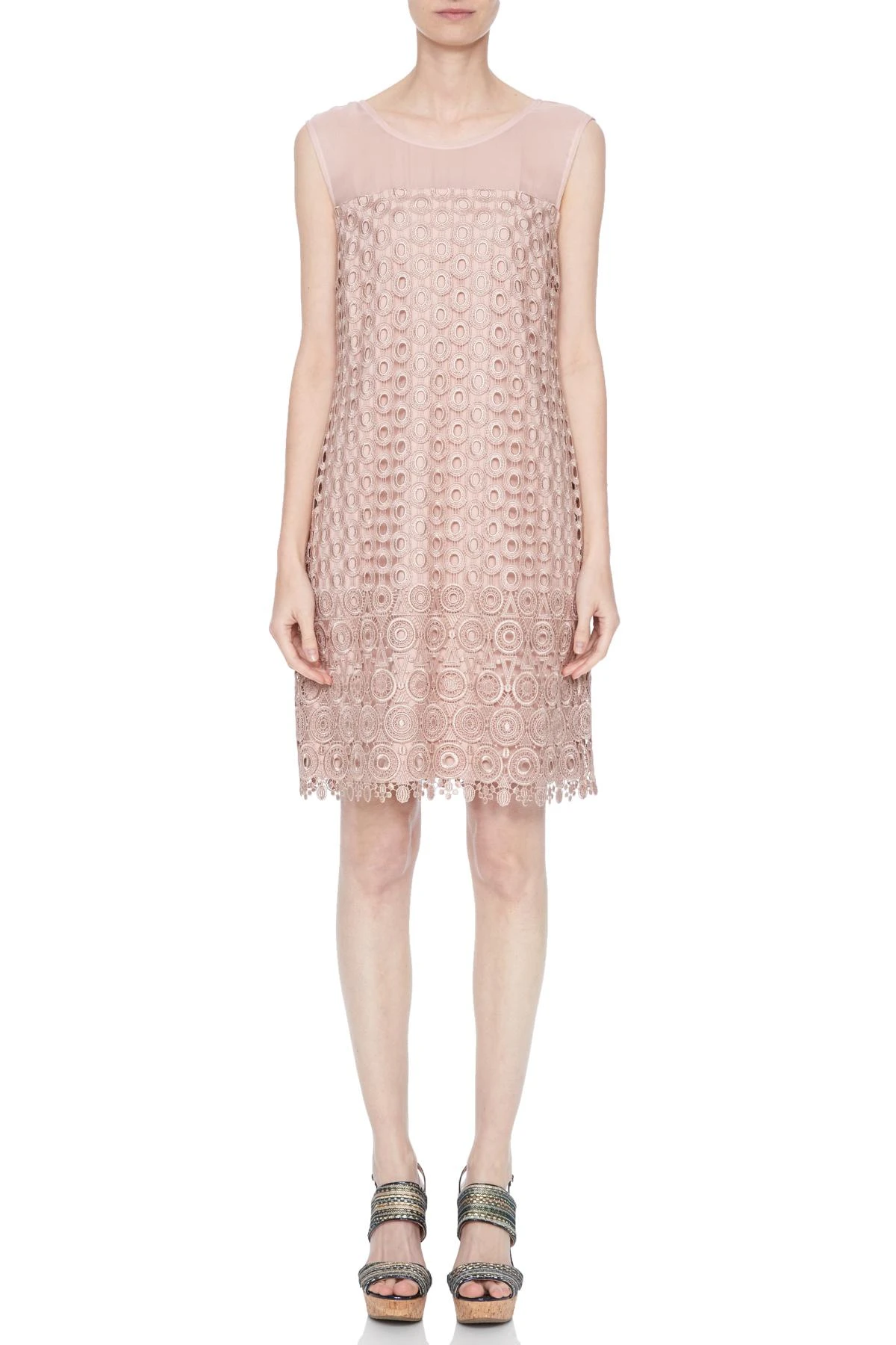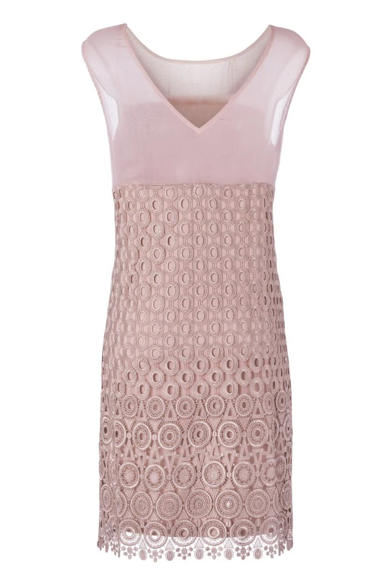 Mouwloos kant-jurk met ronde hals