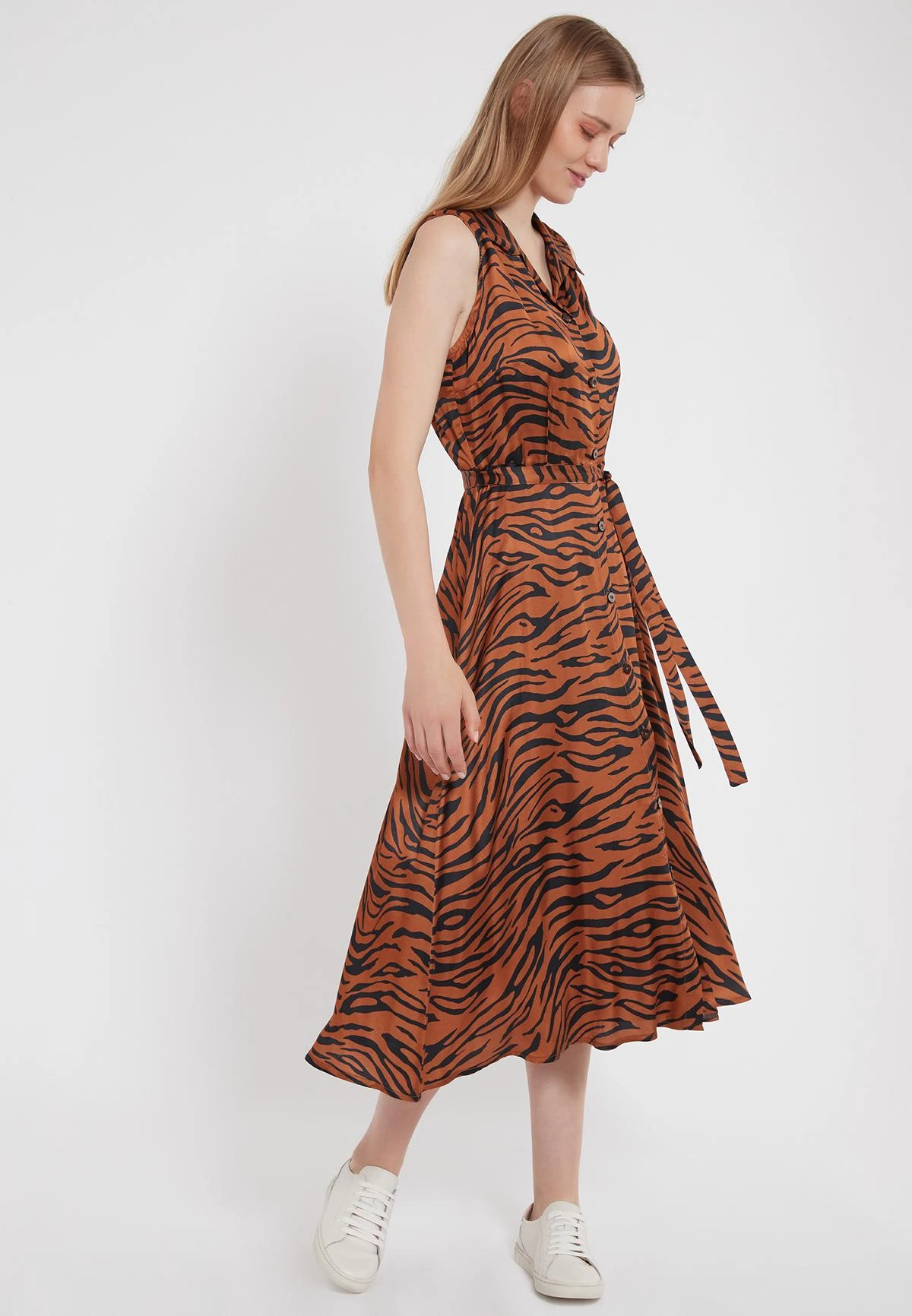 Mouwloos Jurk met Knoppen, Kraag en Riem
