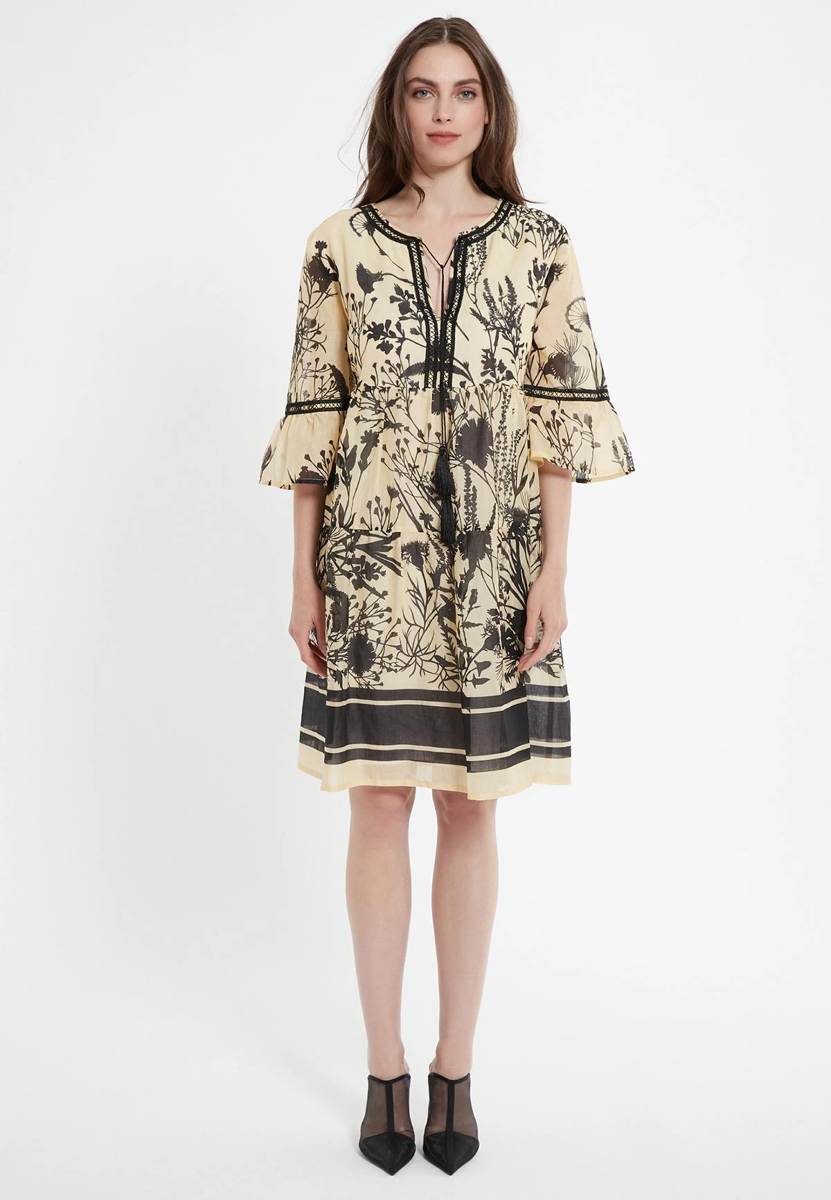 Romantische Dress met Ruches en Volant Mouw