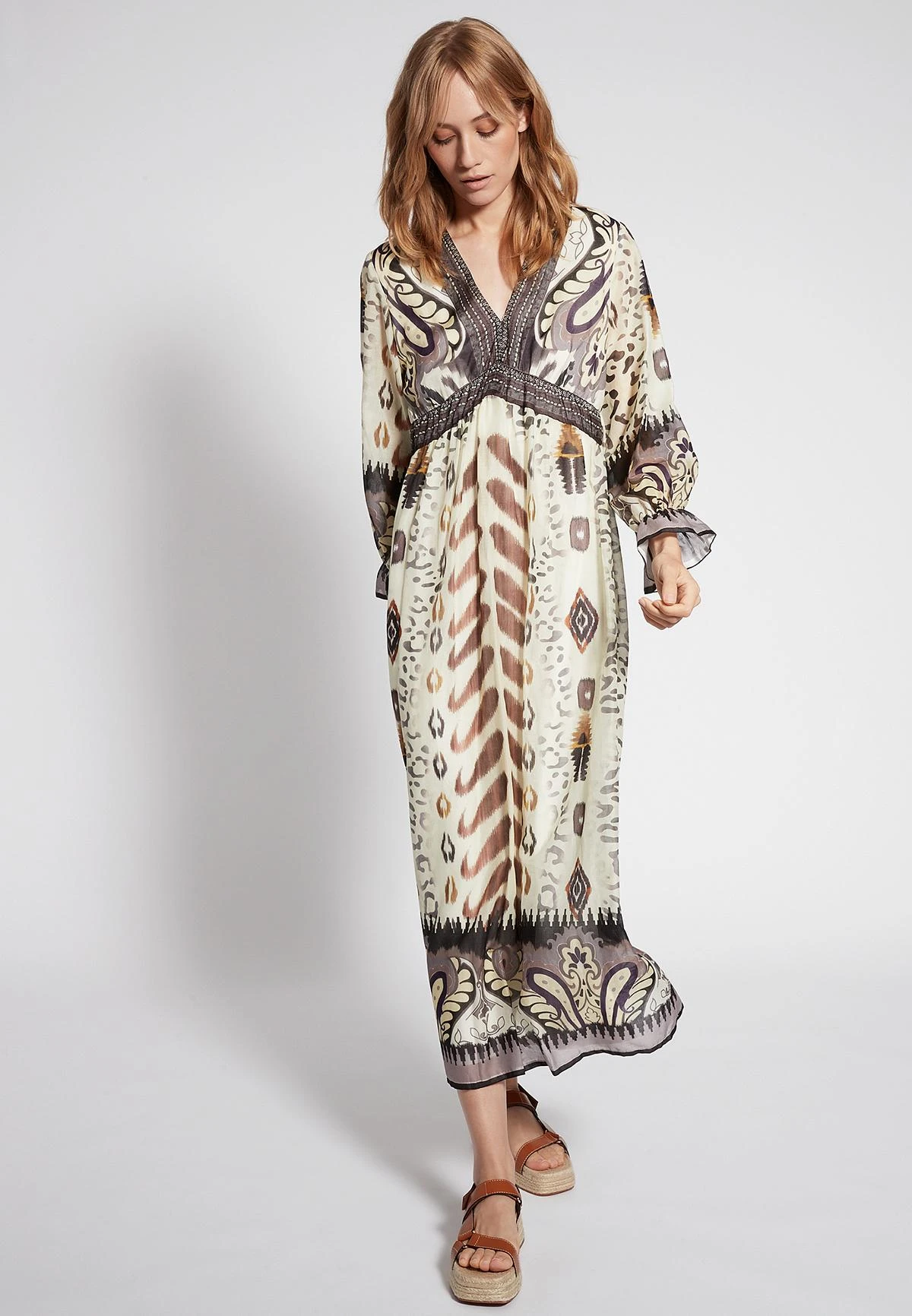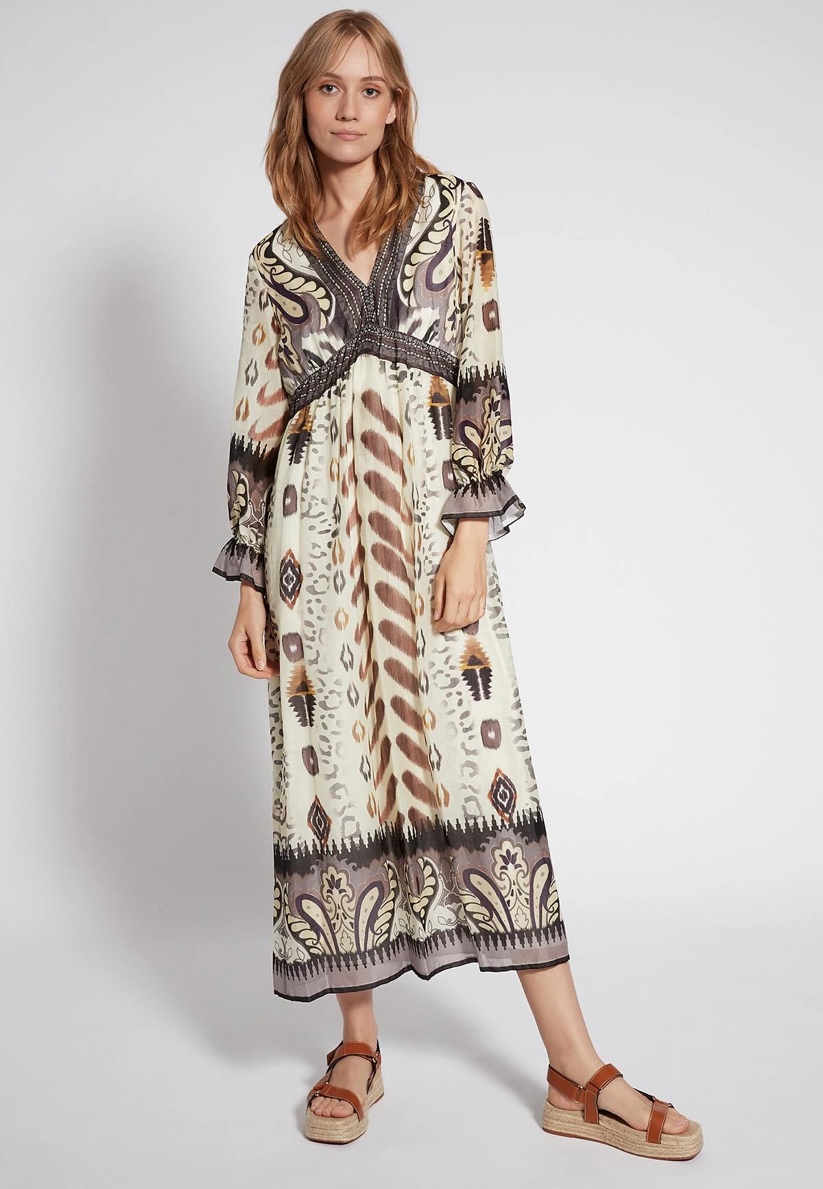Lange Boho Jurk met Hoge Taille
