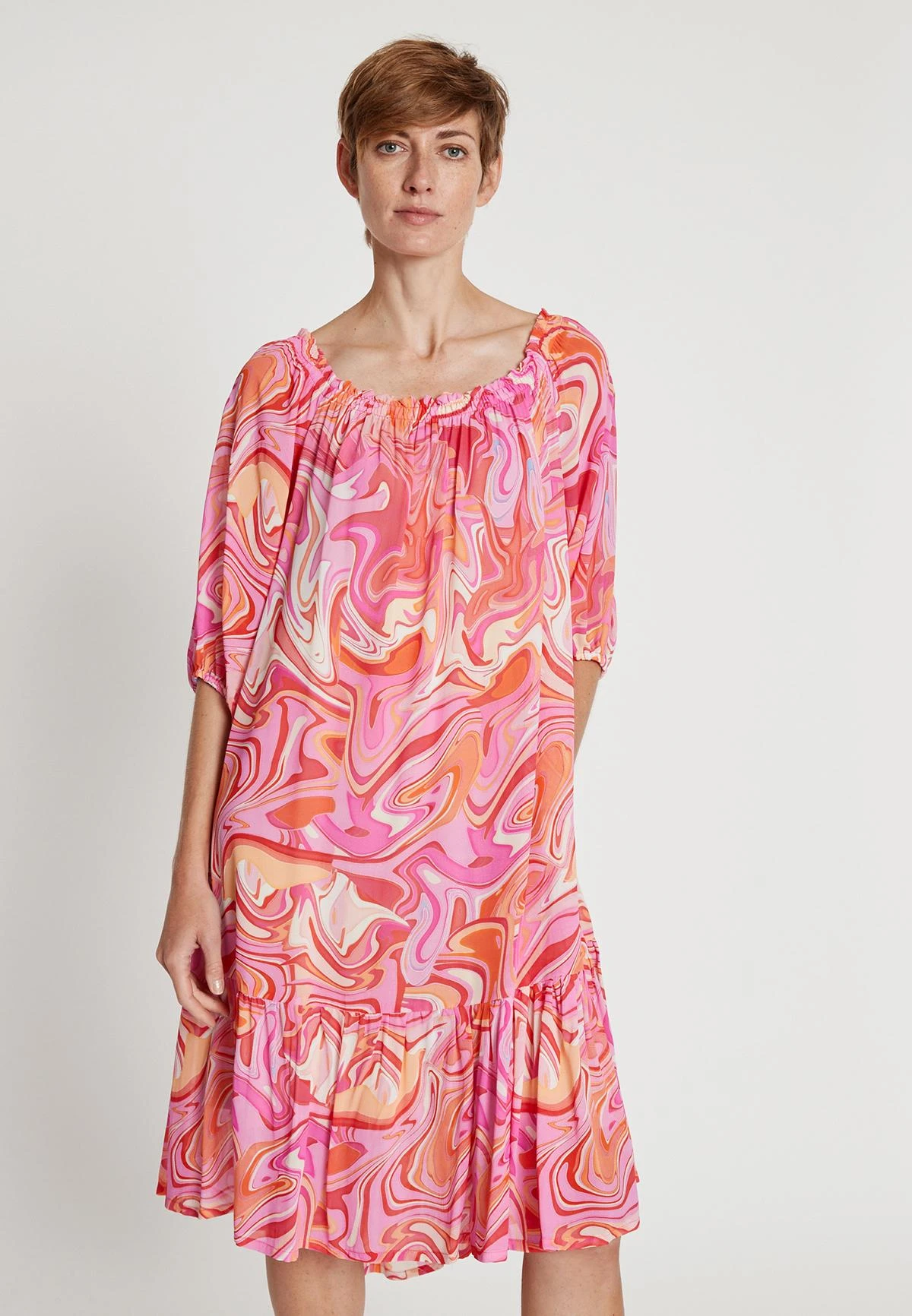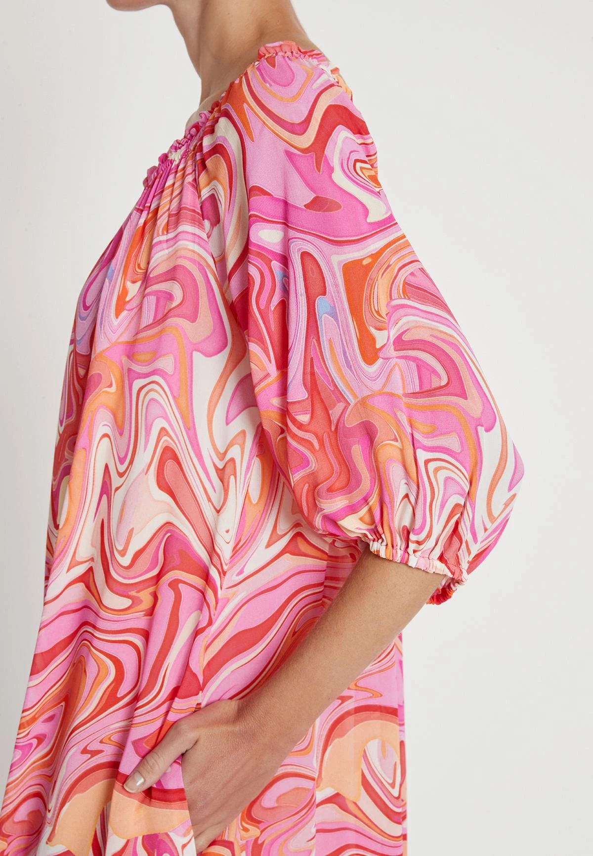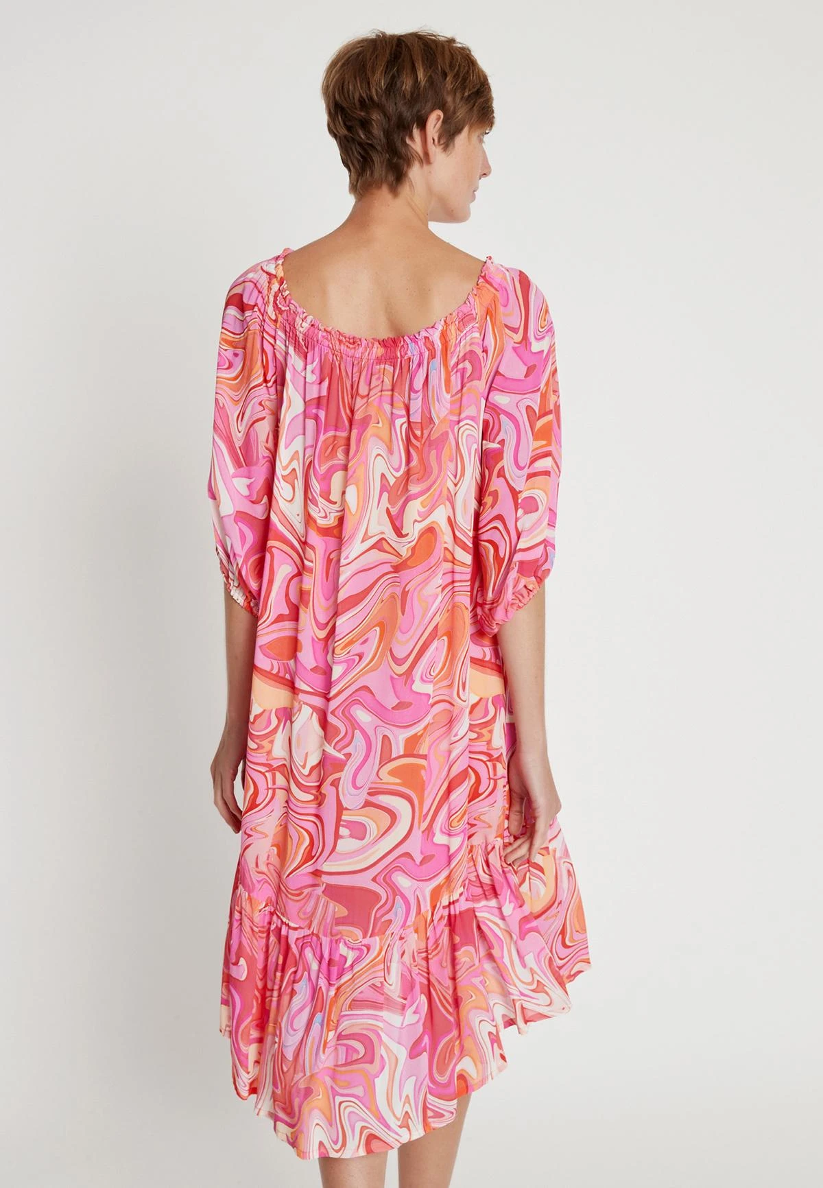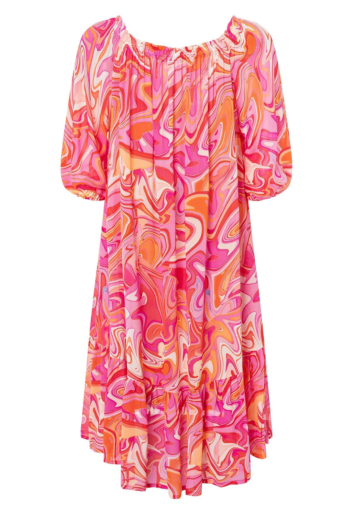Wijde Jurk met Pofmouw en Volant