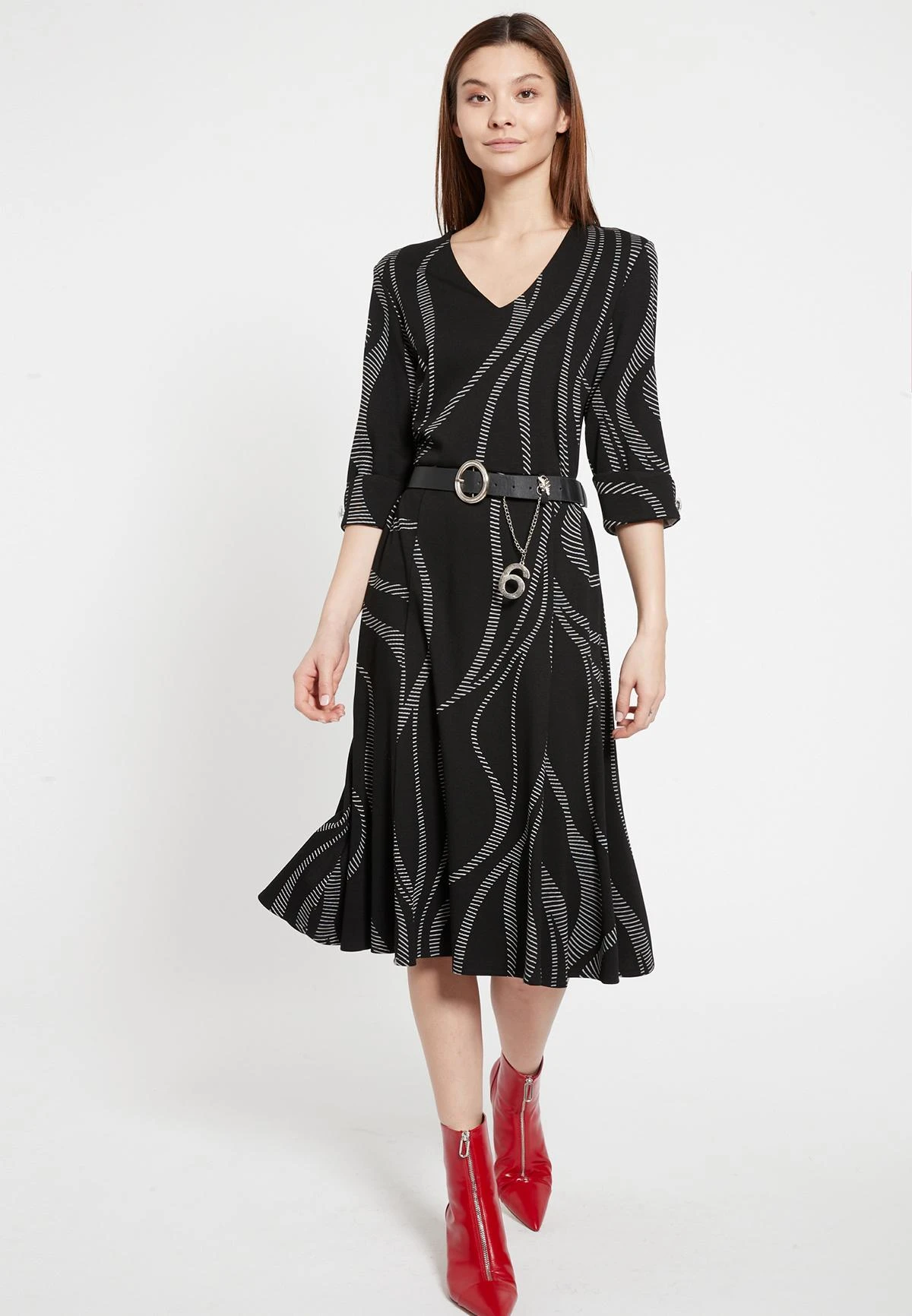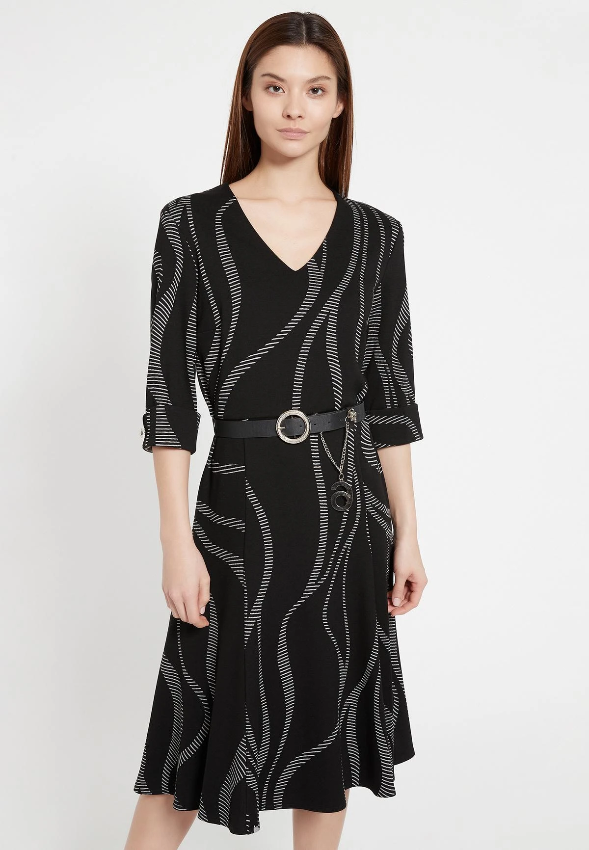 Waisted Jurk met Wijde Rok en Halve Mouw