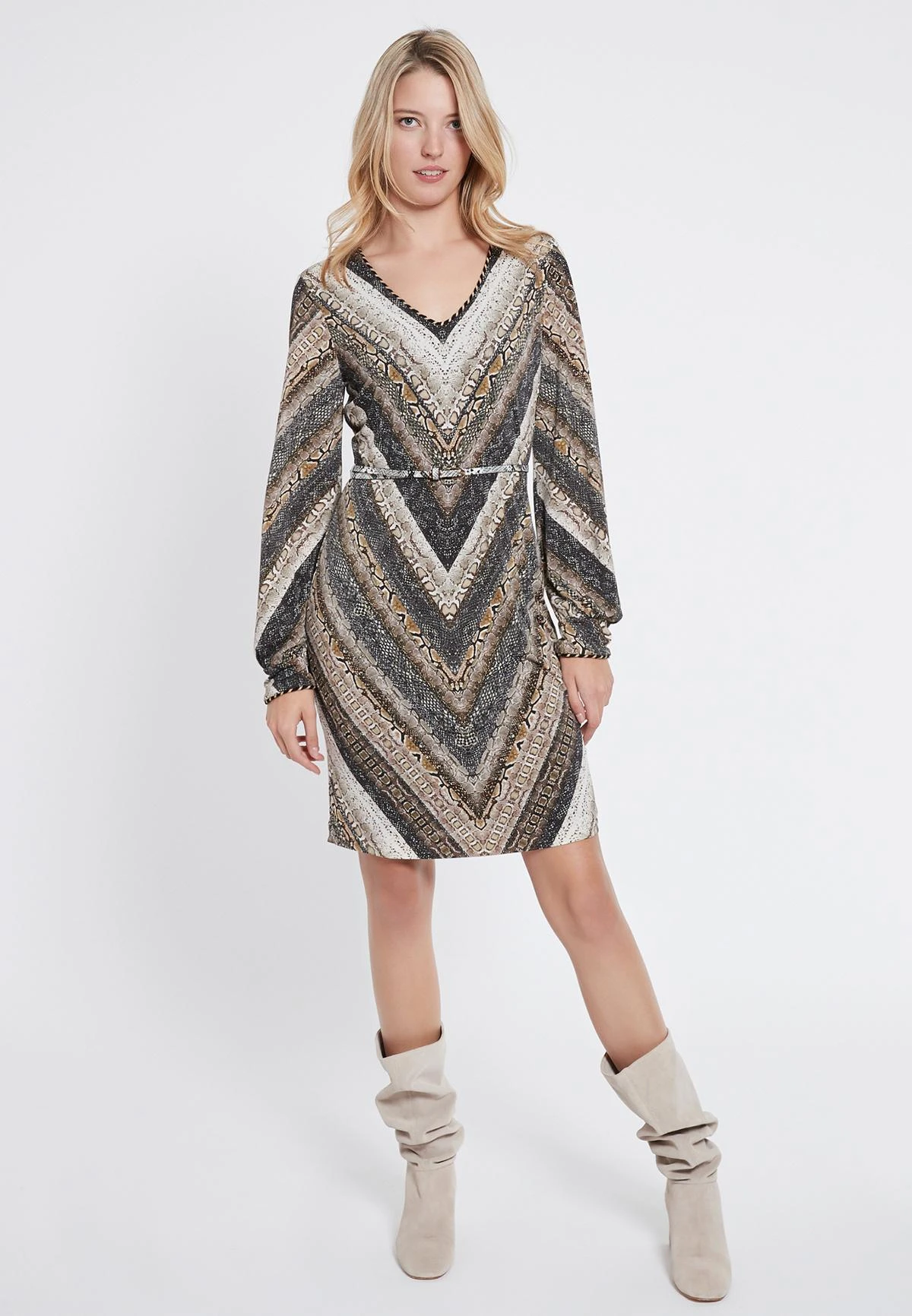 Lange Mouwen Jurk met V-Hals en Manchetten