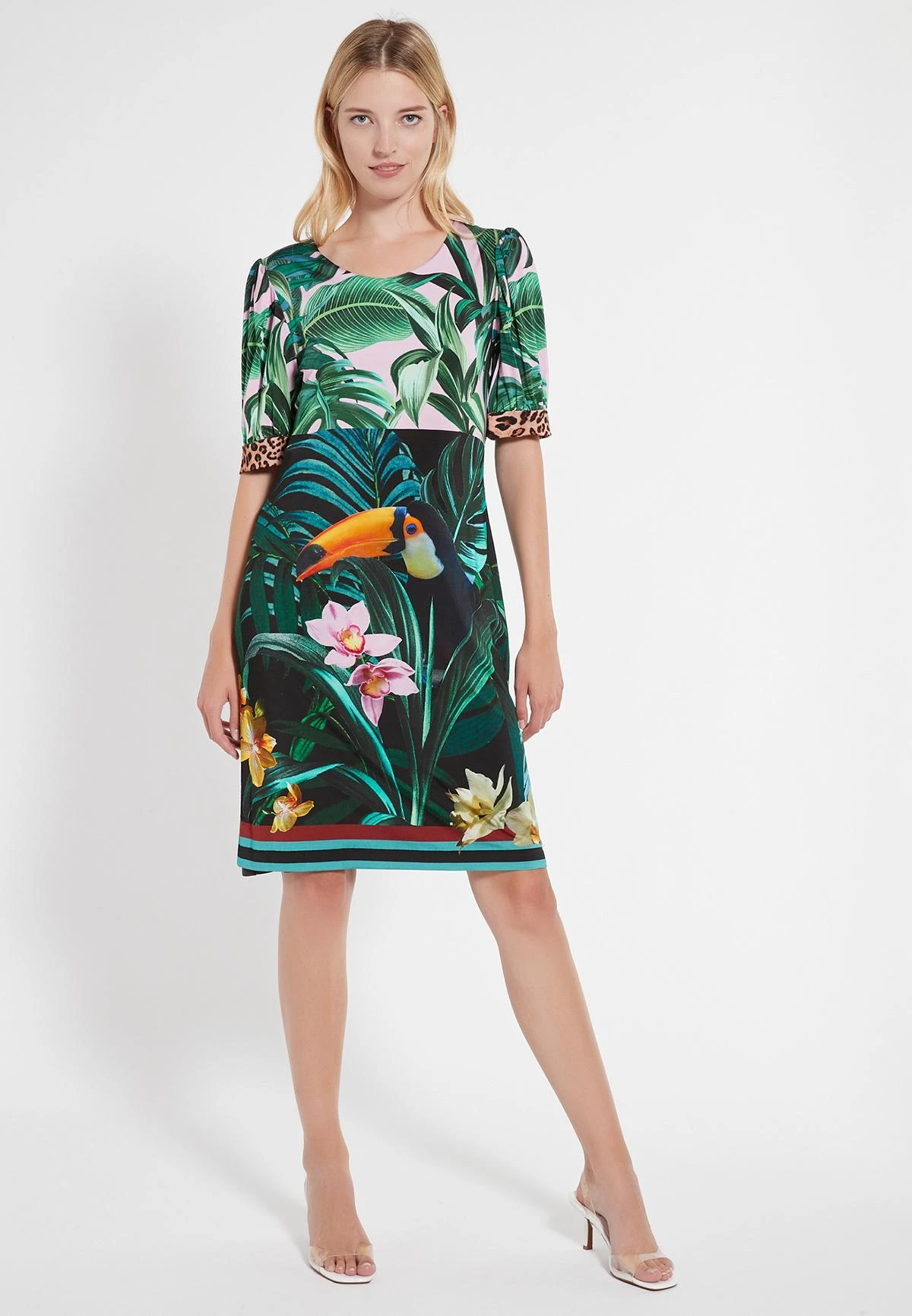 Knie Lengte Jurk met Pofmouw en Ronde Hals