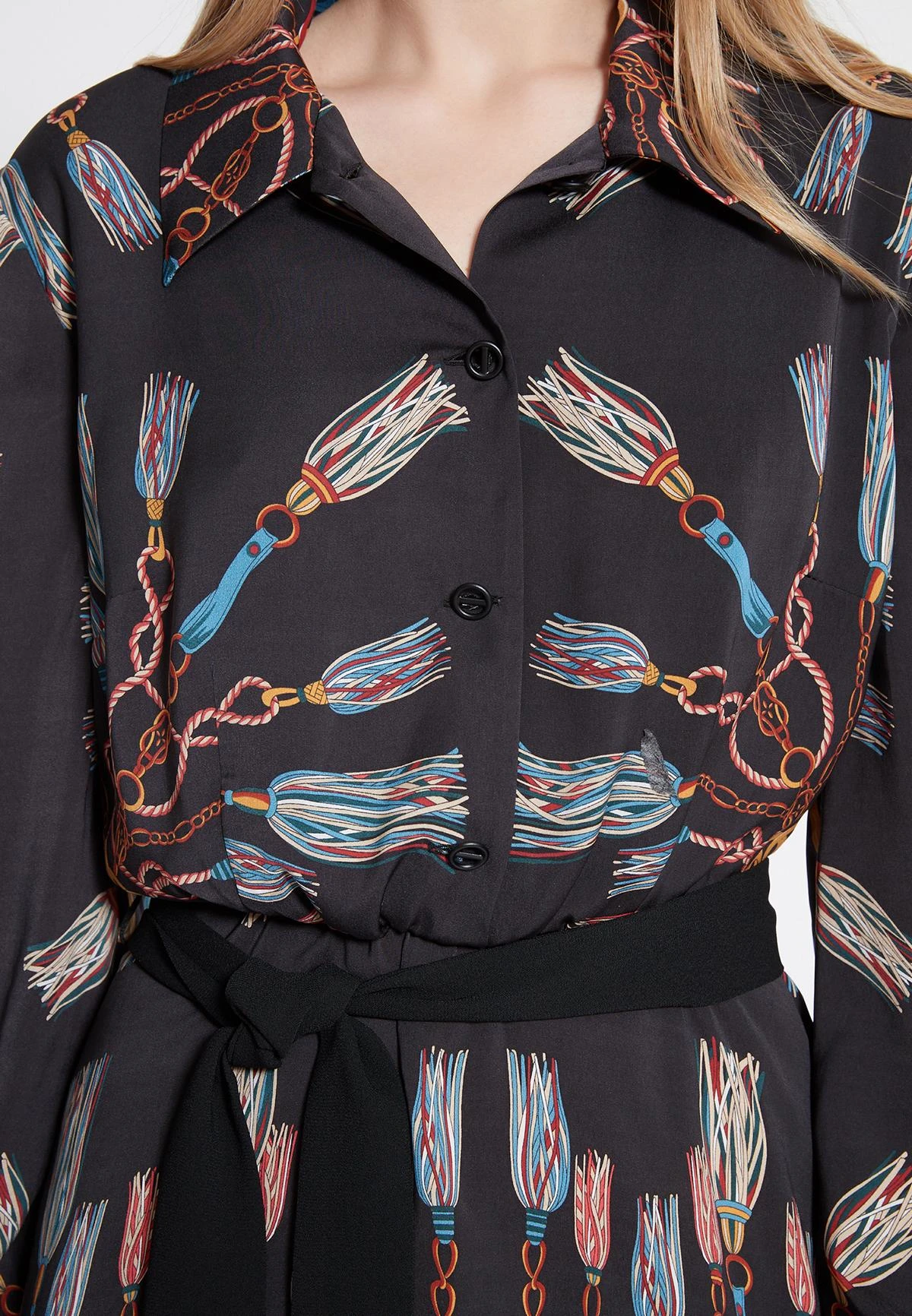Blouse jurk met lange mouwen en kraag