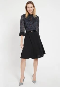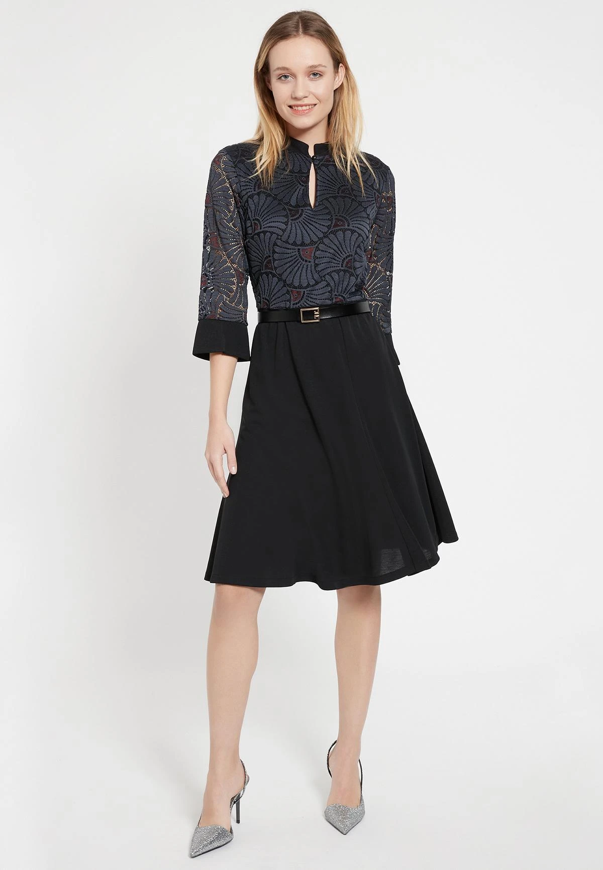 Waisted Jurk met Godet Rok en 3/4 Mouw