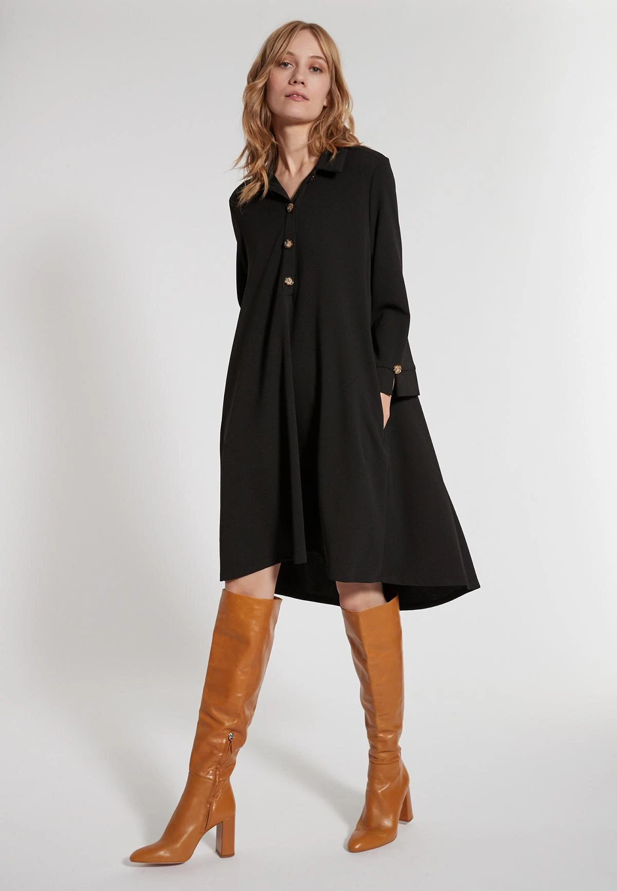Wijde Knielengte Jurk met Kraag