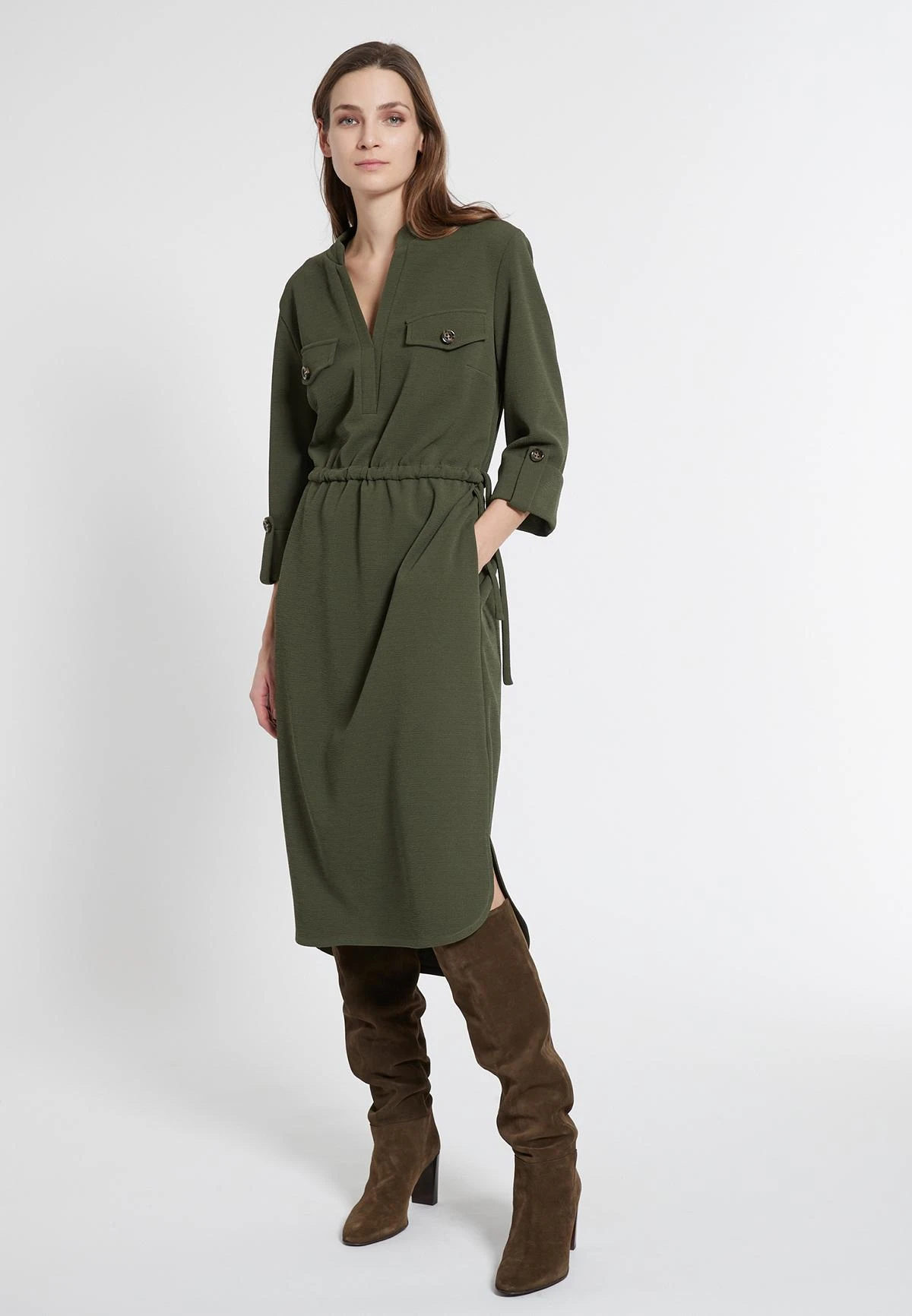 Casual Cargo Jurk met Trekkord en 3/4 Mouw