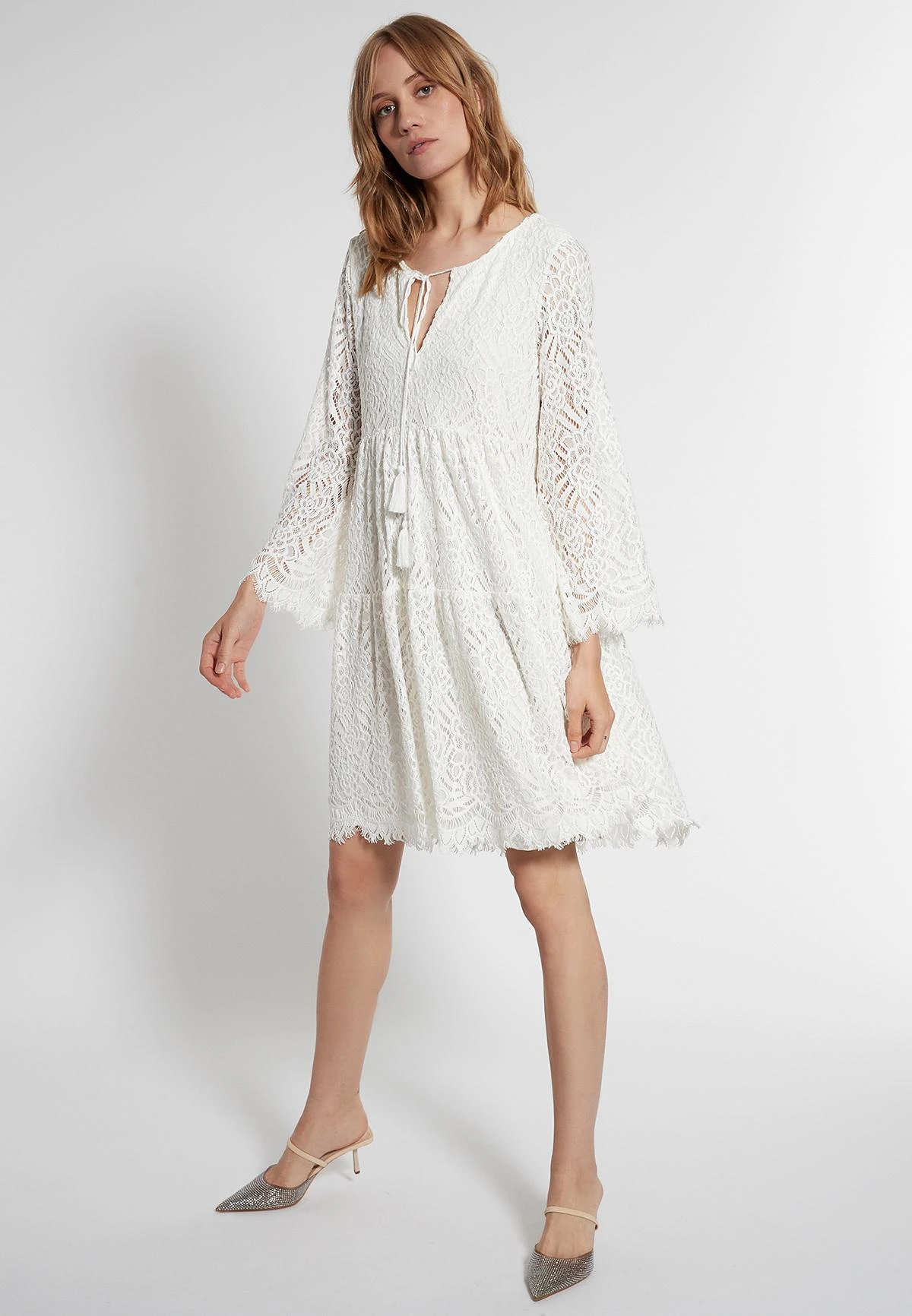 Gelaagde Jurk met Trompetmouwen