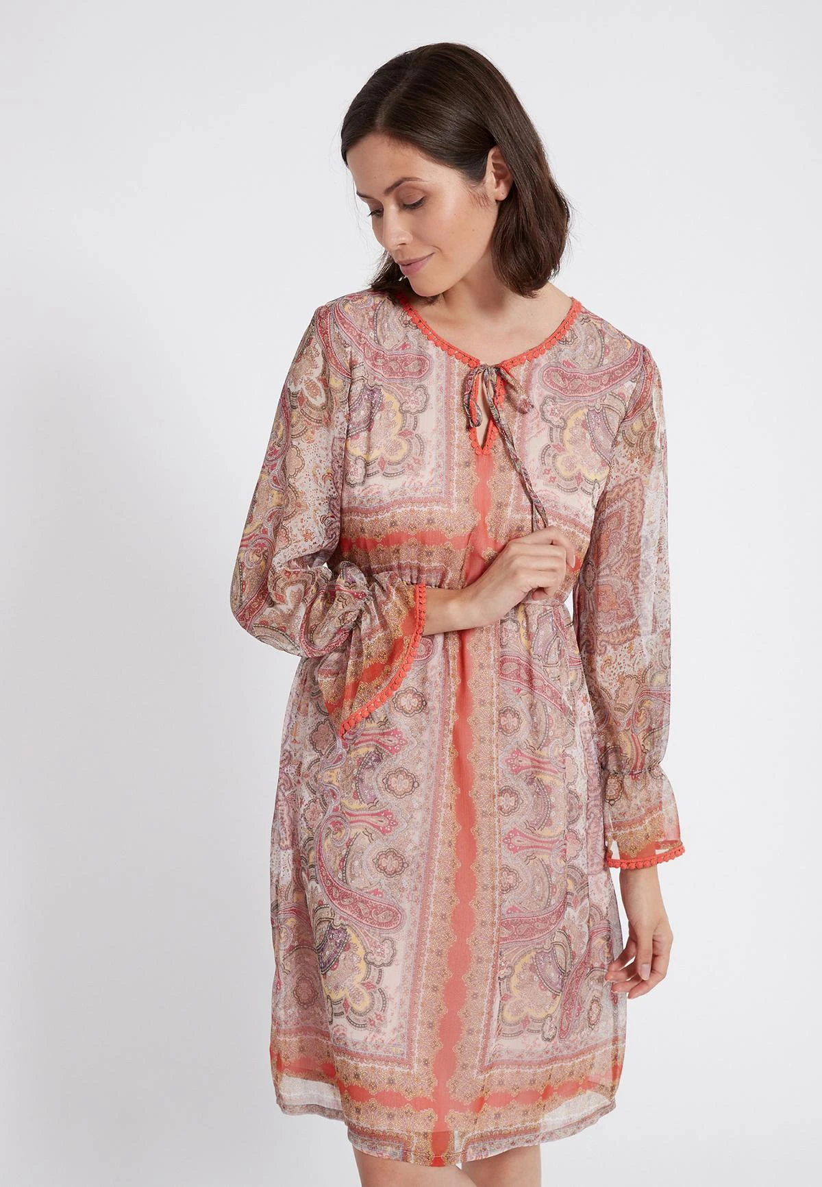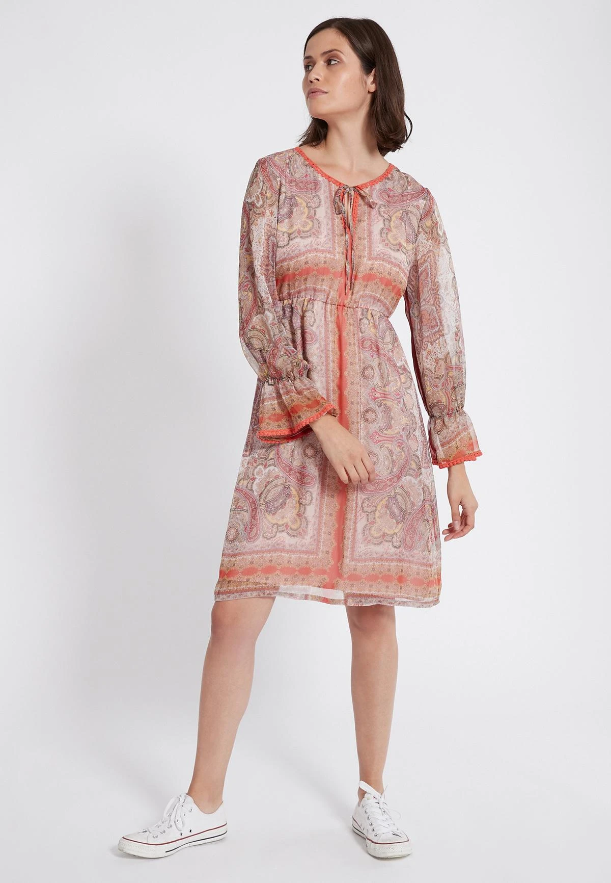 Romantische Lange Mouwen Jurk met Ronde Halslijn