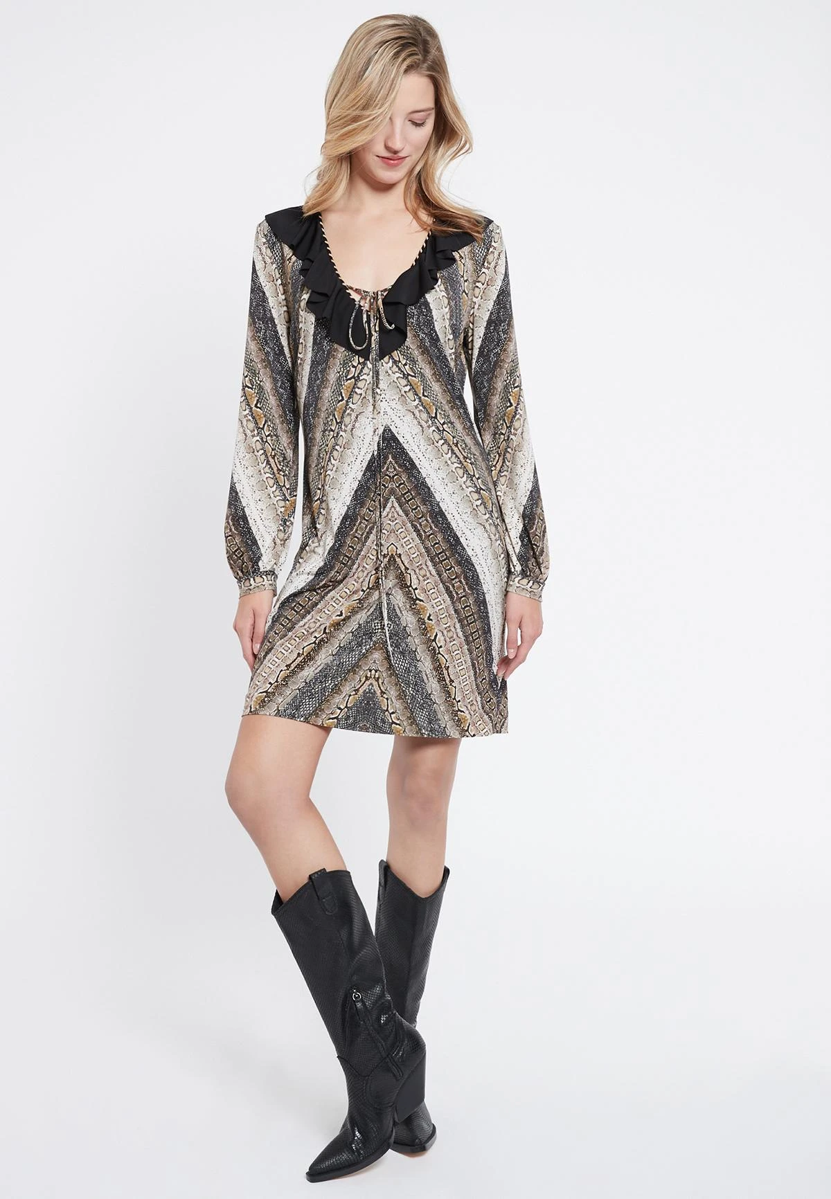 Romantische Lange Mouwen Jurk met V-Hals en Ruches