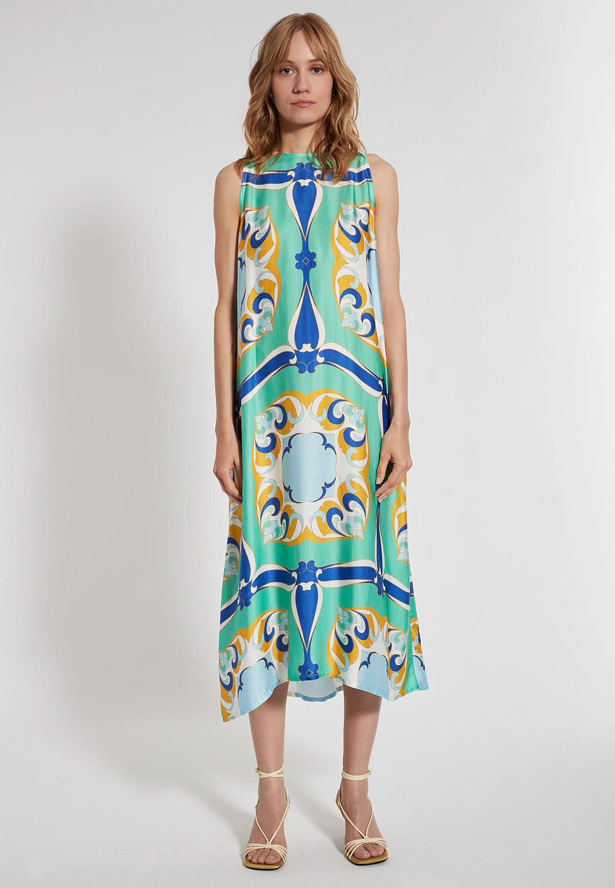 Wijde Mouwloos Midi Jurk