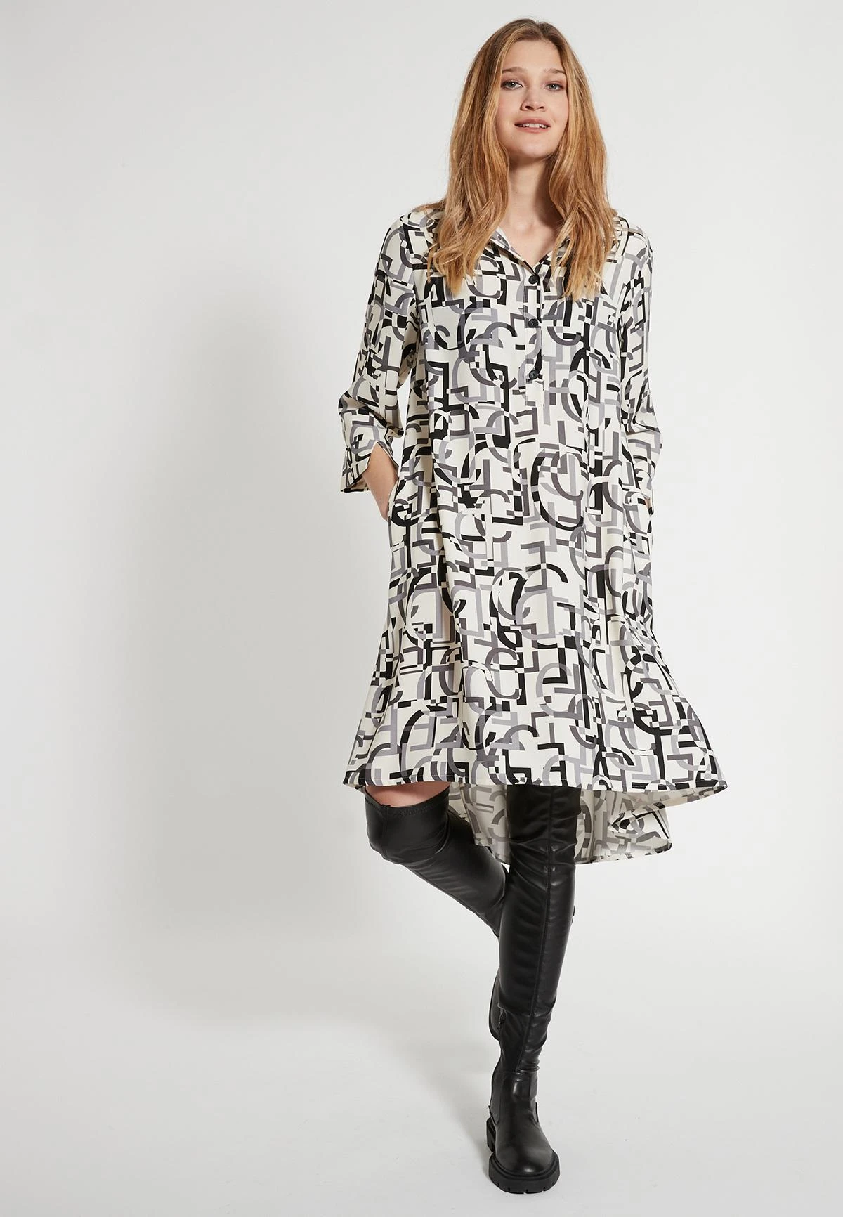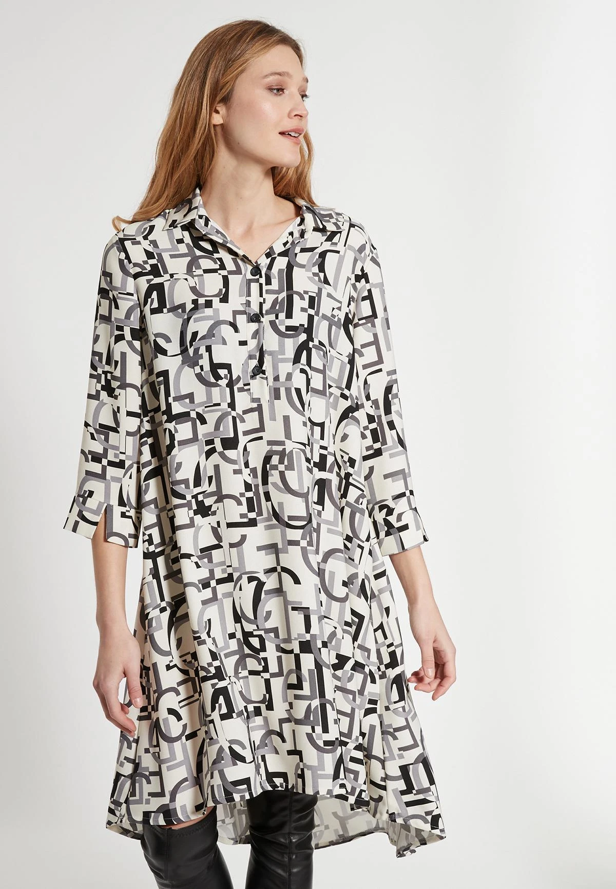 Wijde Shirt Jurk met 3/4 Mouw en Kraag