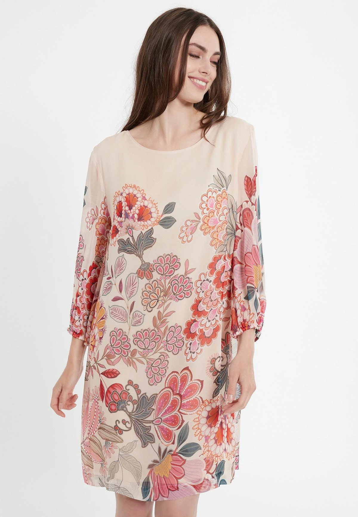 Casual Jurk met Ronde Hals en 3/4 Mouwen