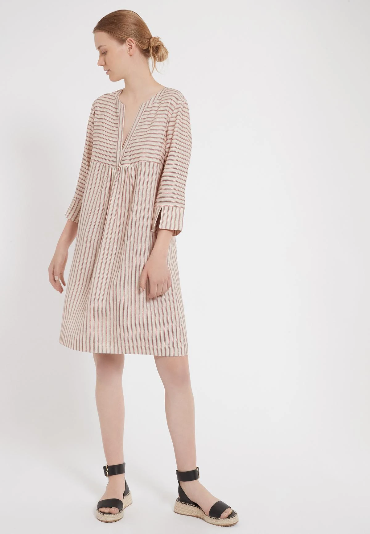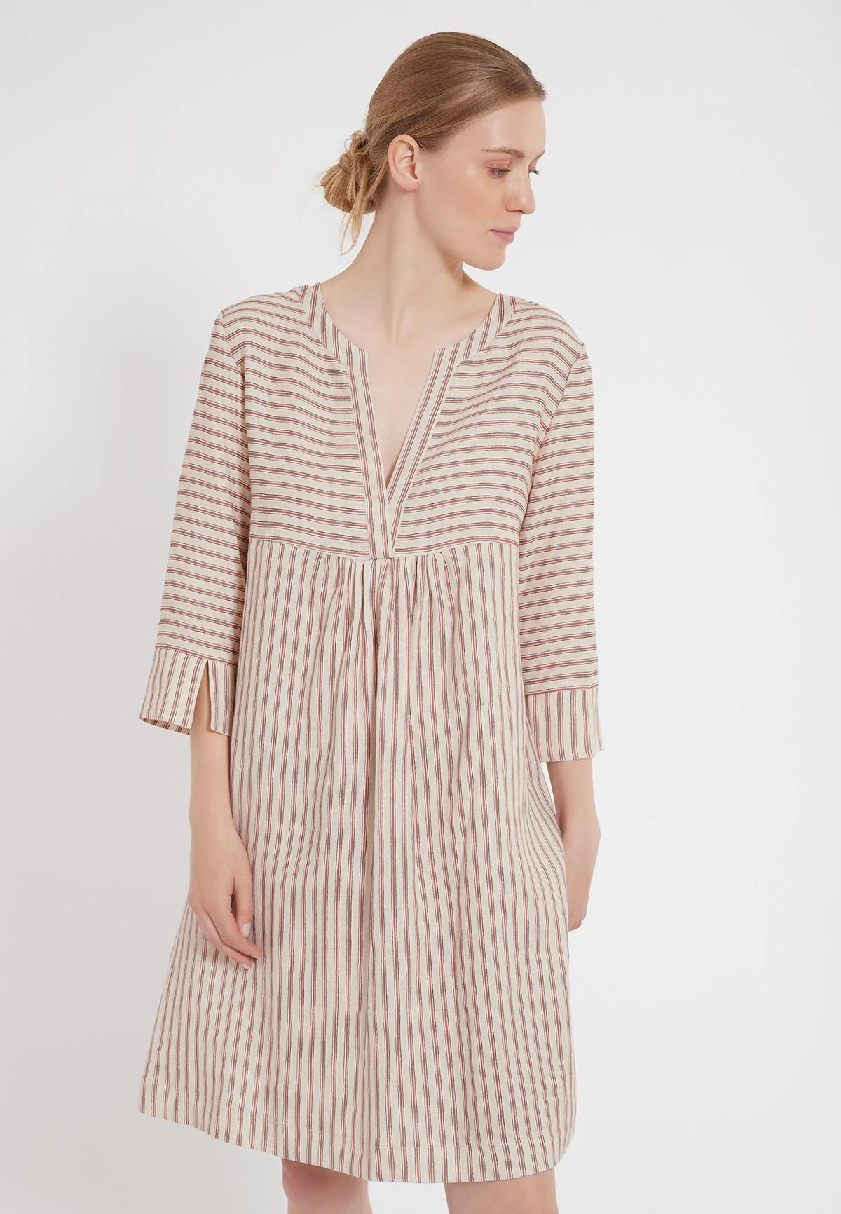 Casual Blouse Jurk met 3/4 Mouw en V-Hals