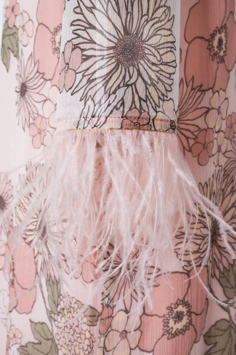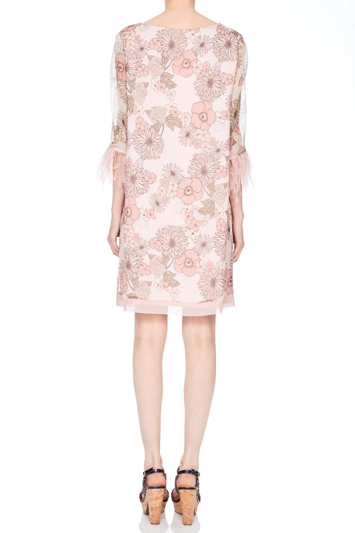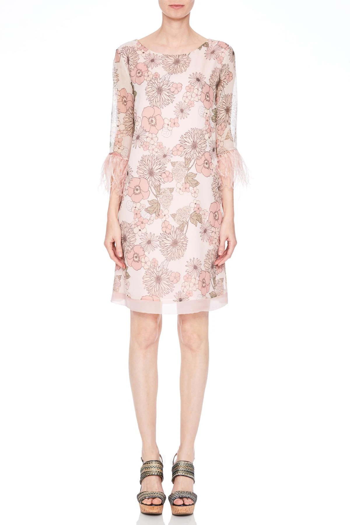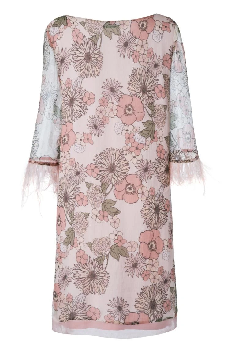 Zijde jurk met 3/4 mouwen en ronde hals