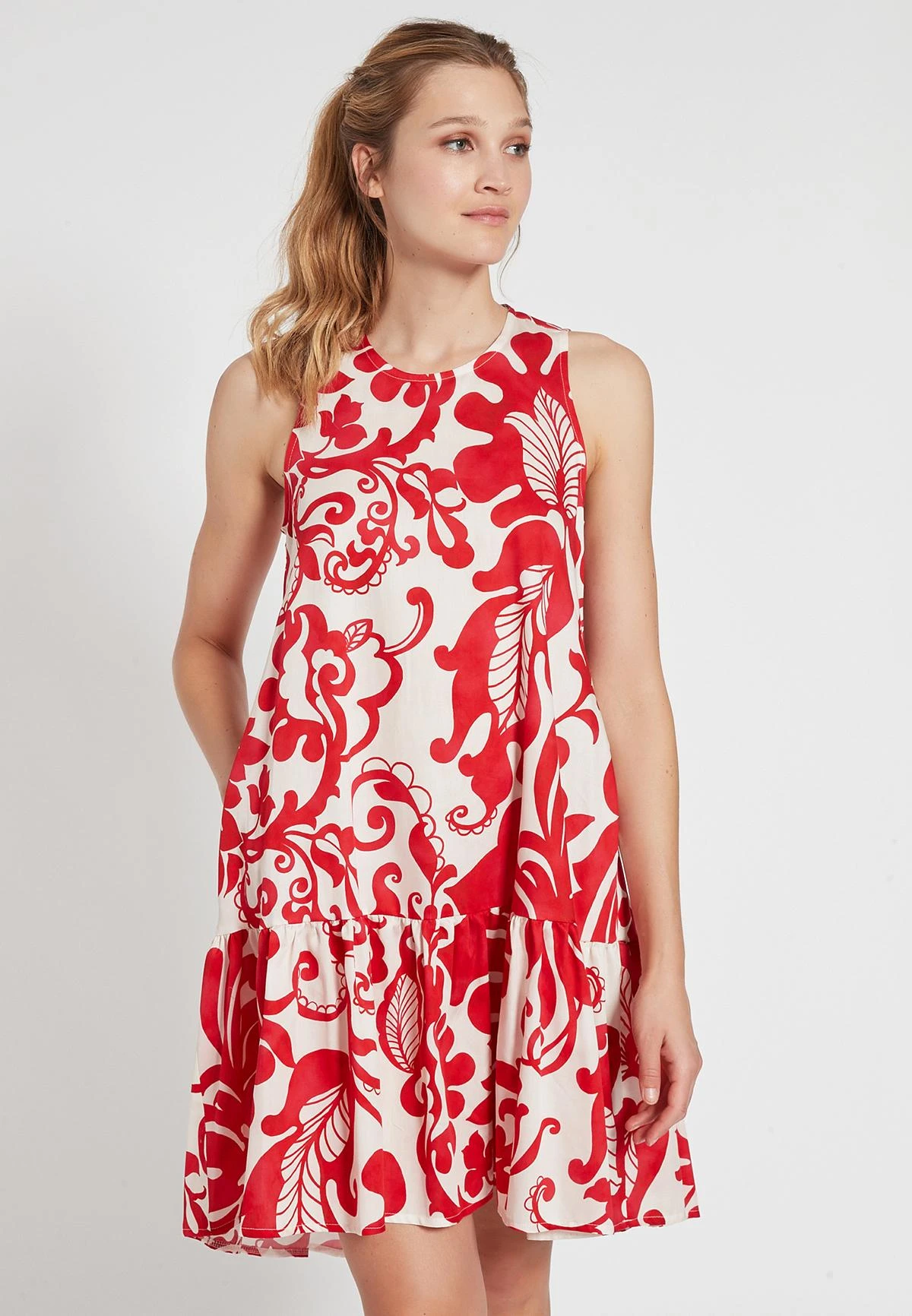 Wijde Mouwloos Jurk met Zakken